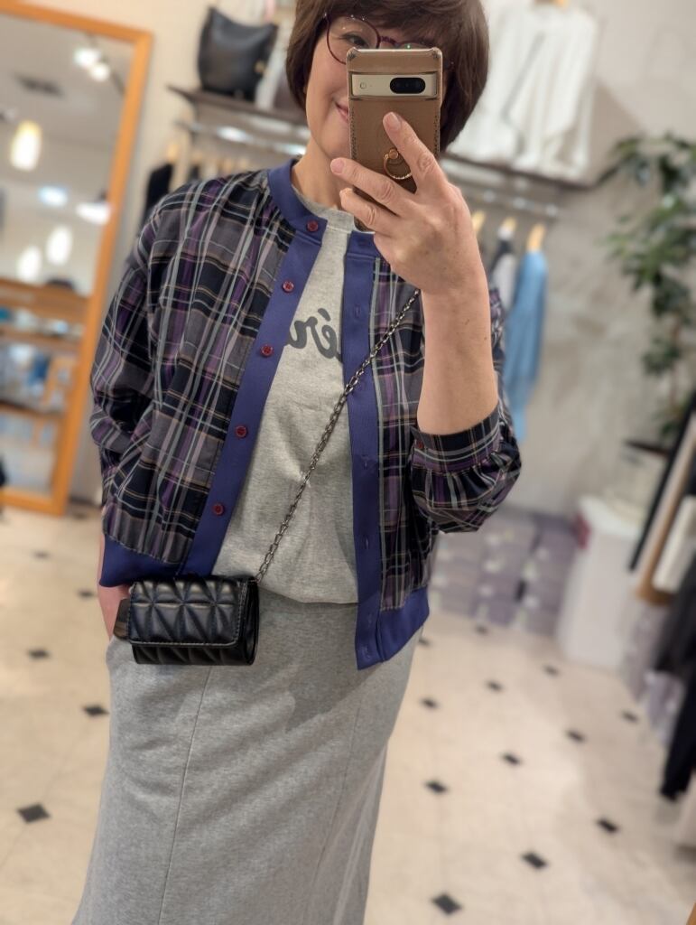 チェック柄シャツカーディガン