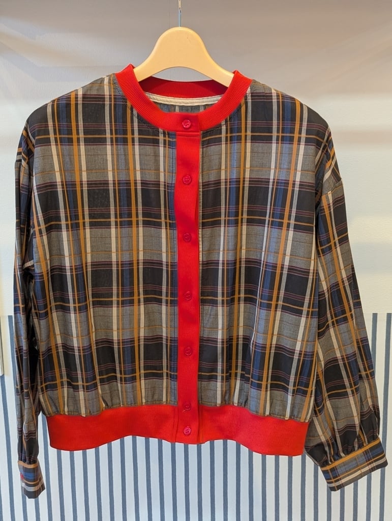 お色を効かせたリブの縁取りでコーディネートにパッと華やぎを与えてくれる、とってもお洒落なチェック柄シャツカーディガンです♪
