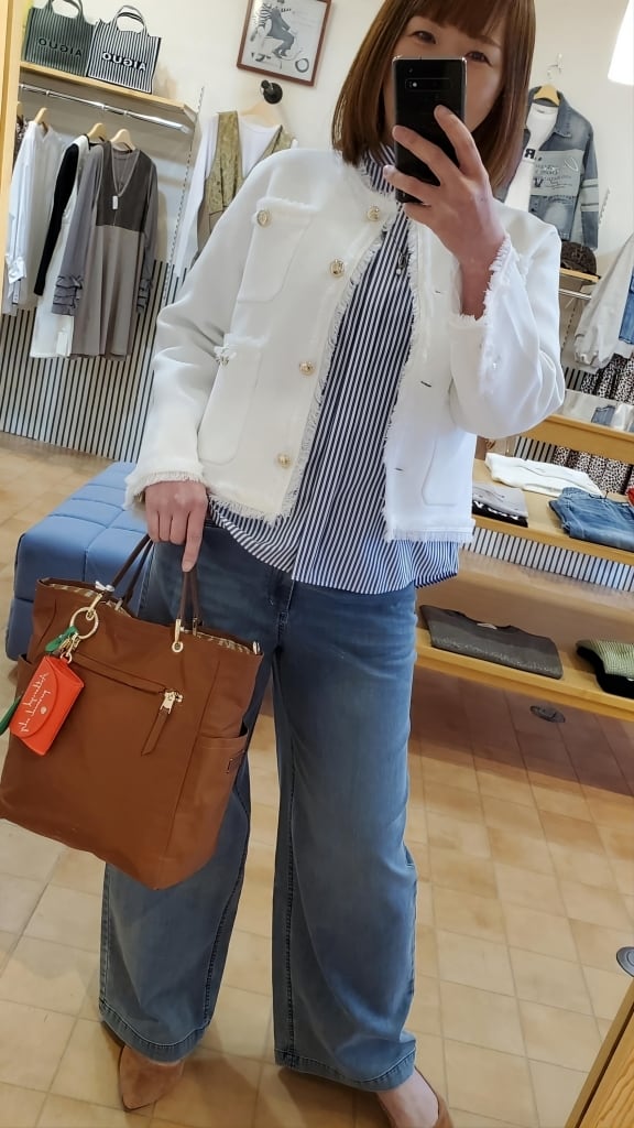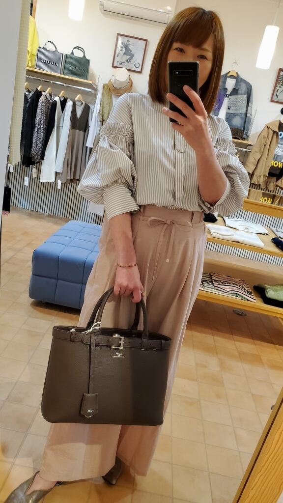 タイプライター生地で爽やかさときちんと感もありますので、カジュアルな日だけでなくお仕事や綺麗めコーディネートにもおすすめです。