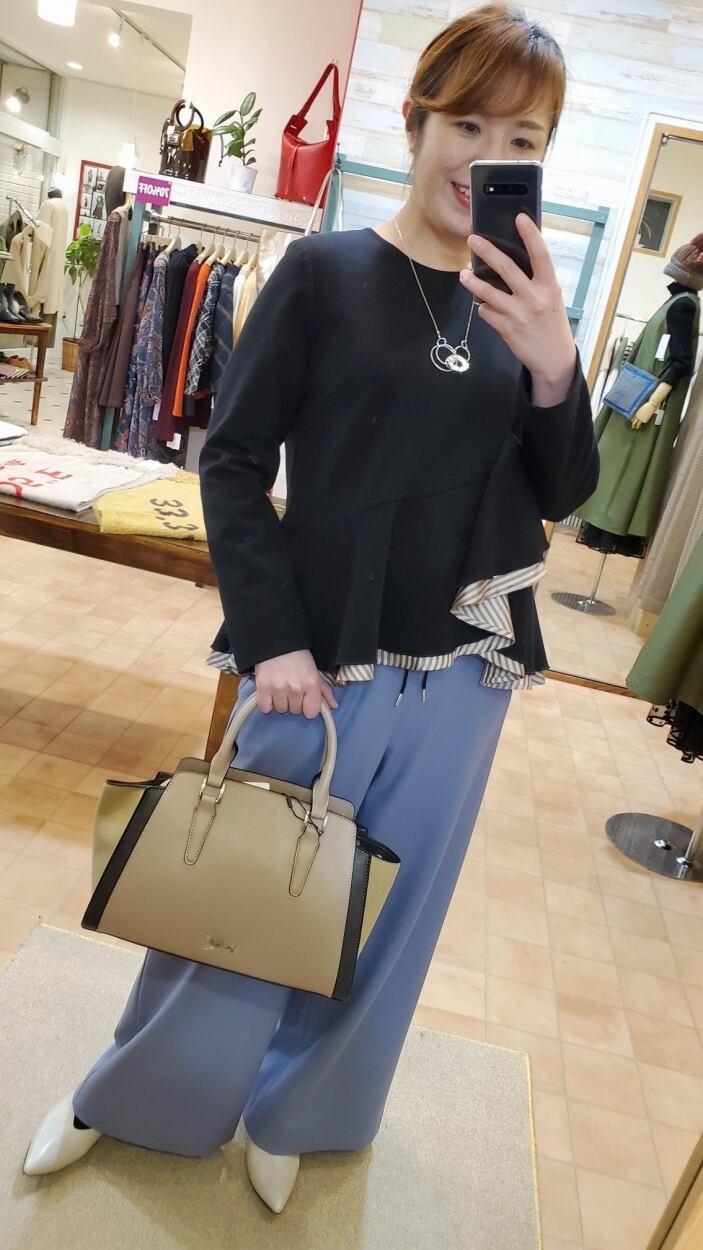 裏起毛で暖かい、柔らかストレッチ生地のワイドパンツ ◆