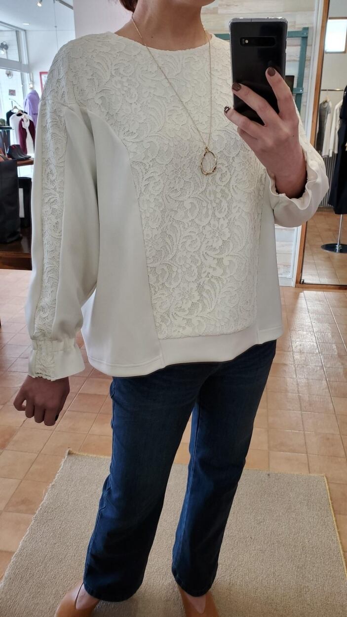 アクアダブルニット×レース切り替え スムースポンチプルオーバー
