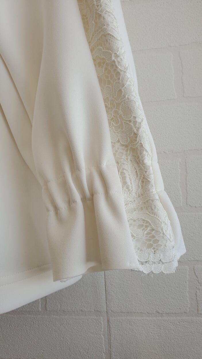 内側よりに入った切り替えとお袖の一本レースラインで、視覚的な痩せ見え効果絶大!