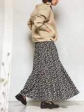 【50%OFF】<トロア>小花プリントギャザーロングスカート