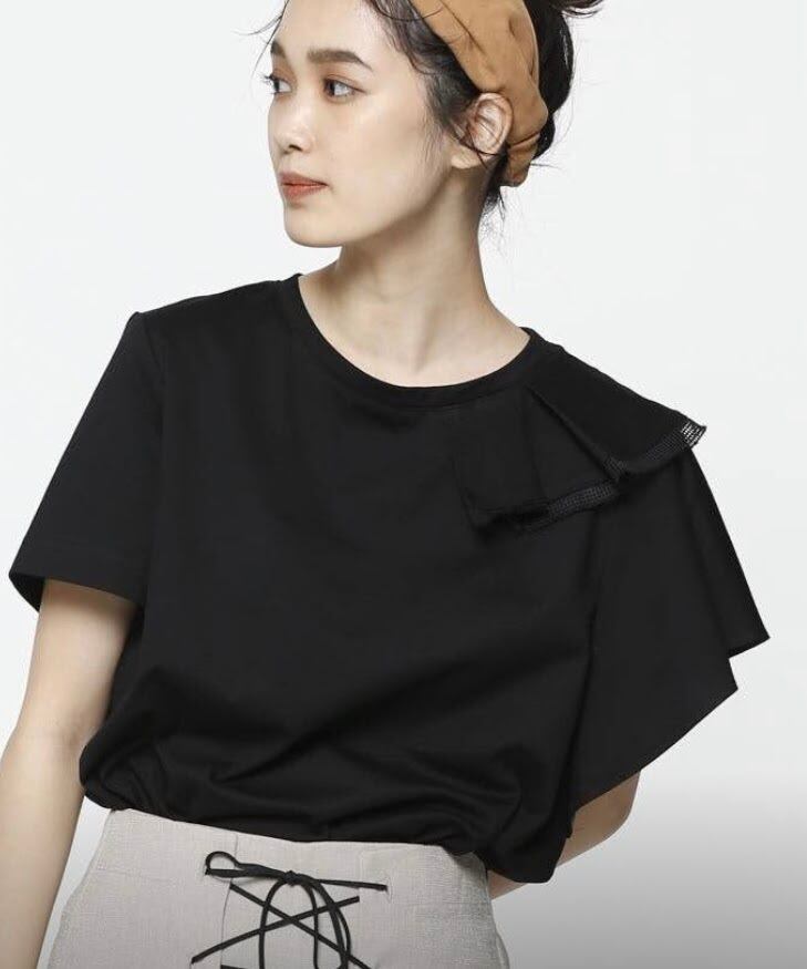 <トロア> マーセライズ天竺・肩フリルプルオーバー