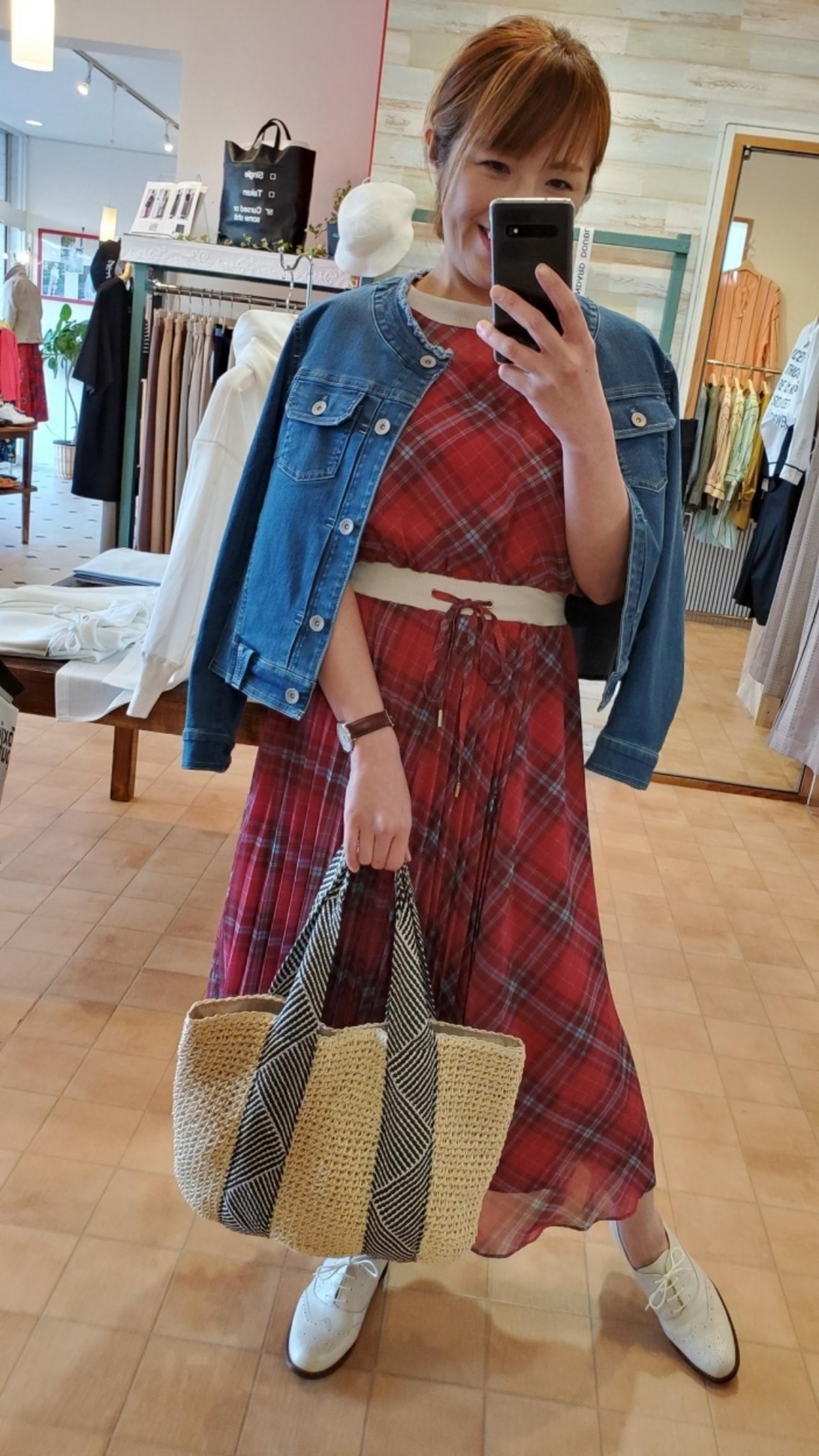 [50%OFF]<Mia>チェック柄シフォンワンピース