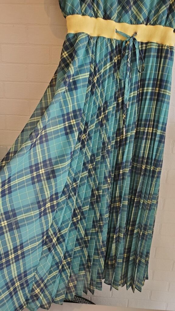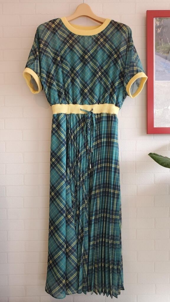 チェック柄プリントのさらりとしたシフォン生地に、リブ使いを施したワンピース