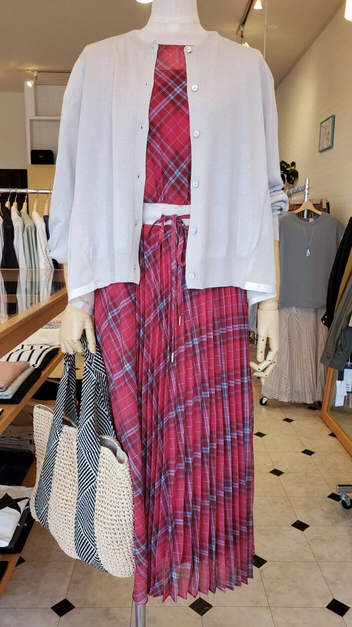 サラリとして肌触りの良い、ドライタッチの綿混糸編みの丸首ニットカーディガン