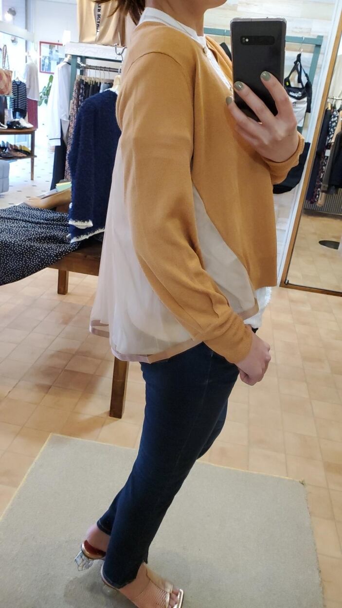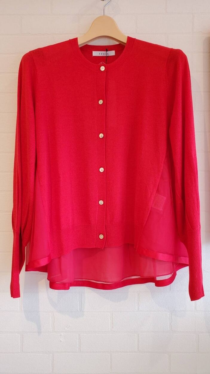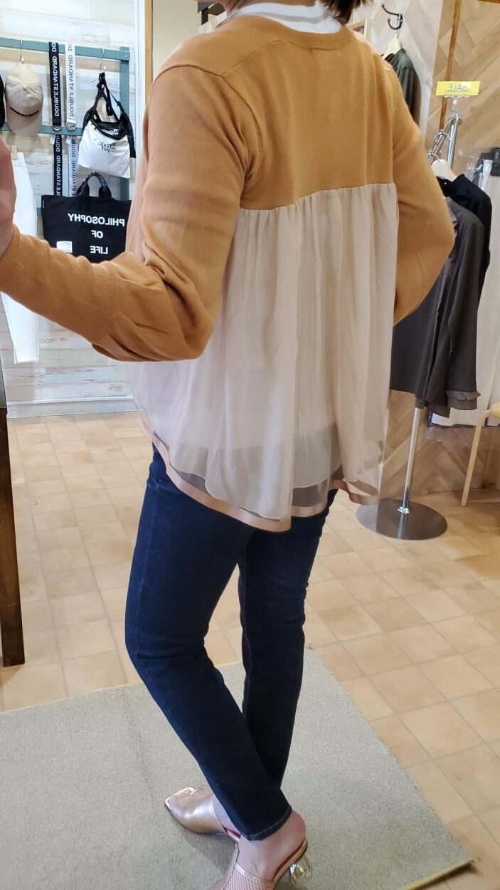 <トロア> 天竺後ろチュール丸首ニットカーディガン