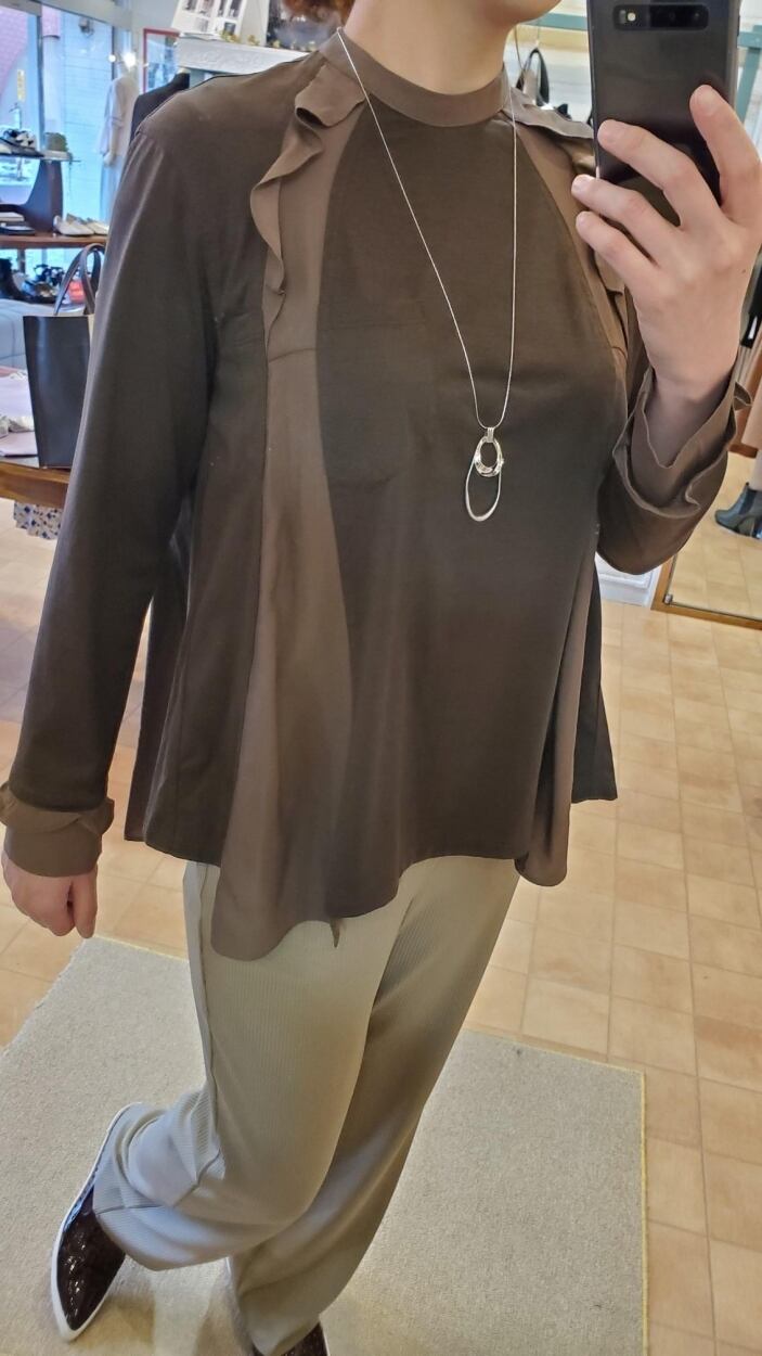 肩フリルと切り替えフレアで一枚見映えのプルオーバー