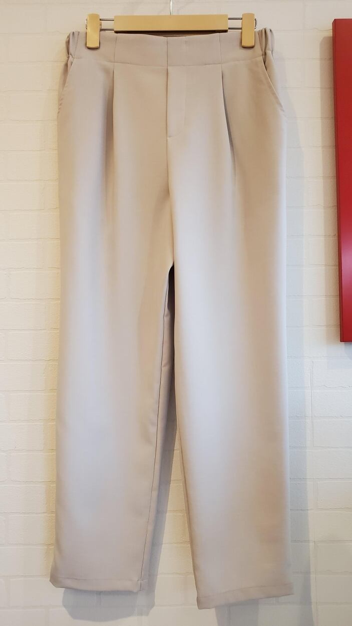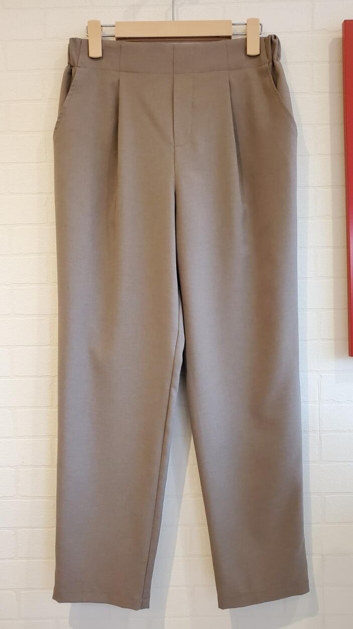 涼感リネンライクのストレッチレザークロスを使用したテーパードパンツ