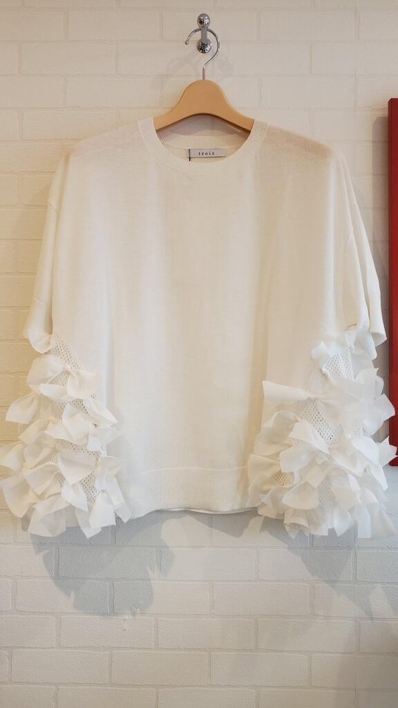 <トロア> 12G強撚コットン天竺 サイドリボンプルオーバー