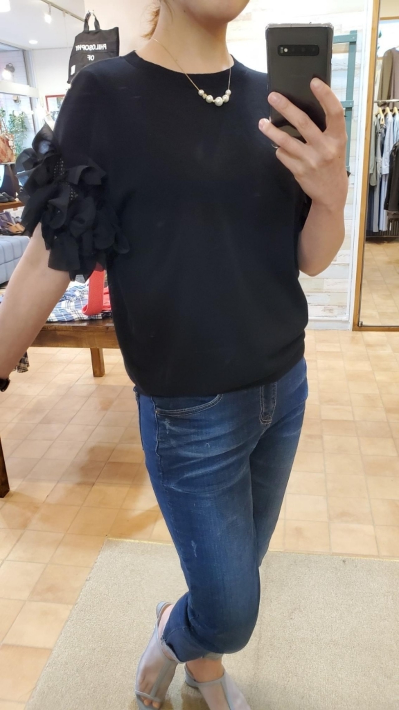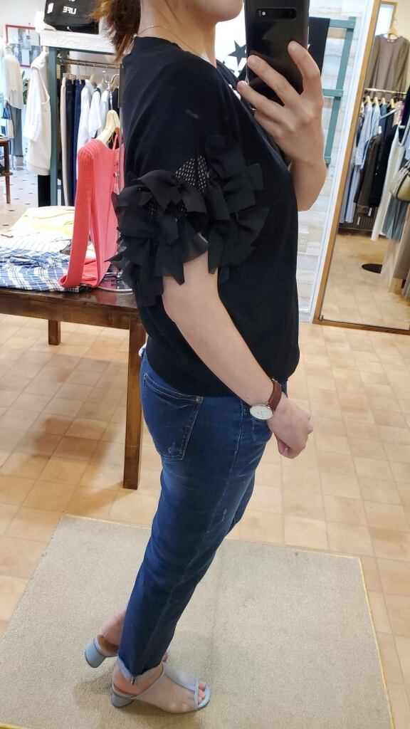 <トロア> 強撚コットン天竺 お袖リボンプルオーバー