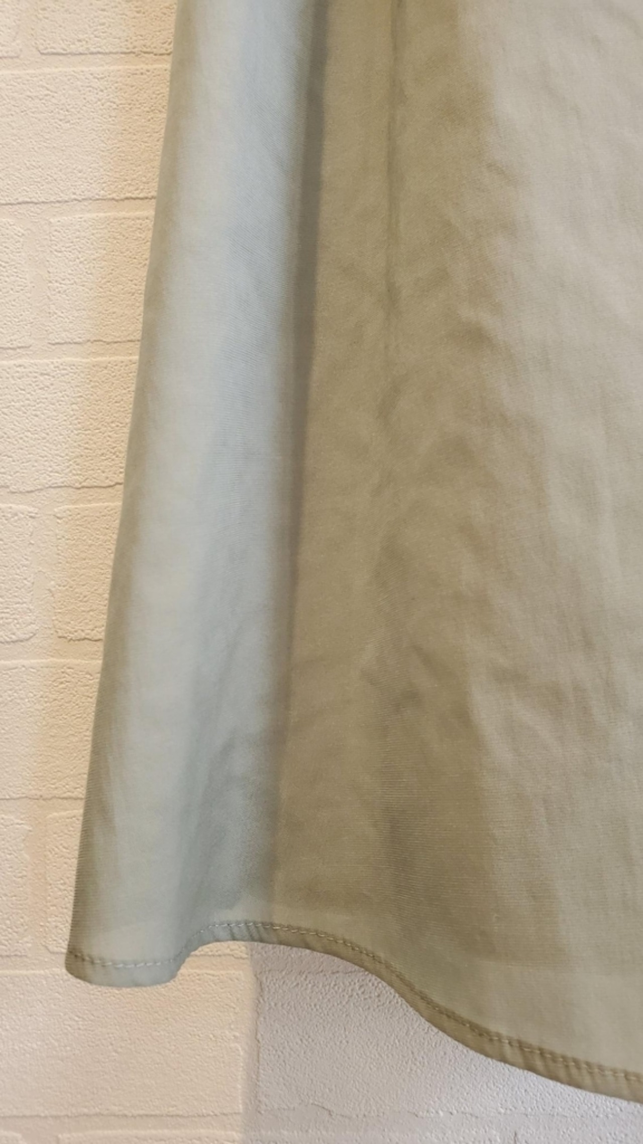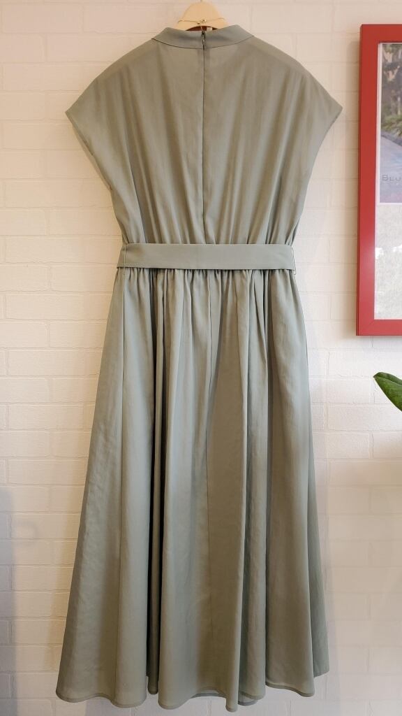 ゴム入りのウエストにリボン結びのベルトで、スタイルアップして魅せてくれます