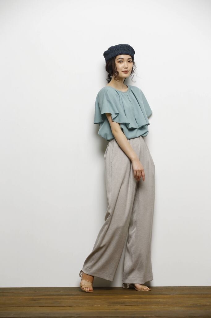 肩周りの甘さを抑えたフリル使いが今年らしい旬のデザイン