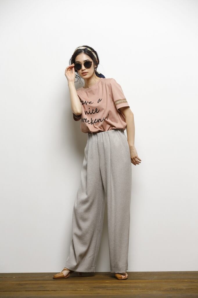 [10%OFF]<トロア> シルケット天竺・袖メッシュブレード切り替えロゴカットソー