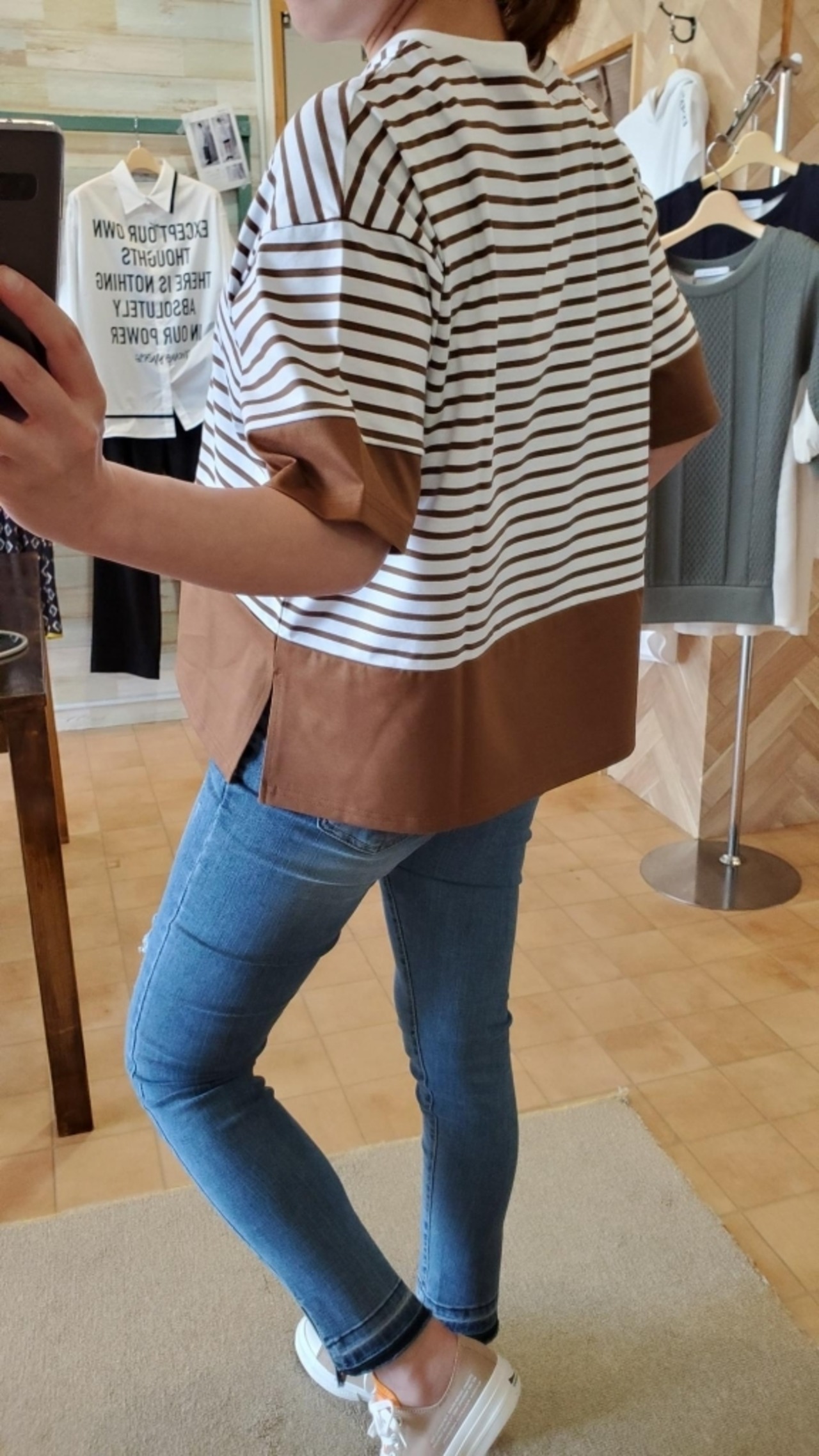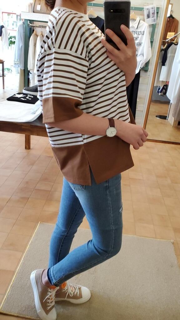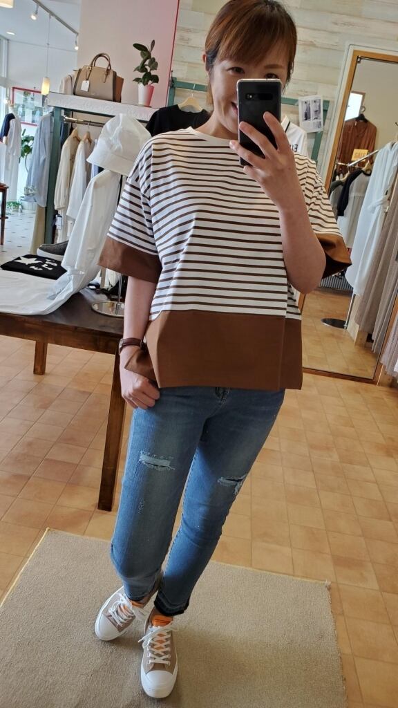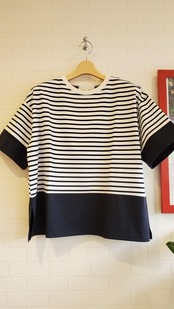 [50%off]<ルシャンテ> ボーダー柄×無地コットン配色プルオーバー