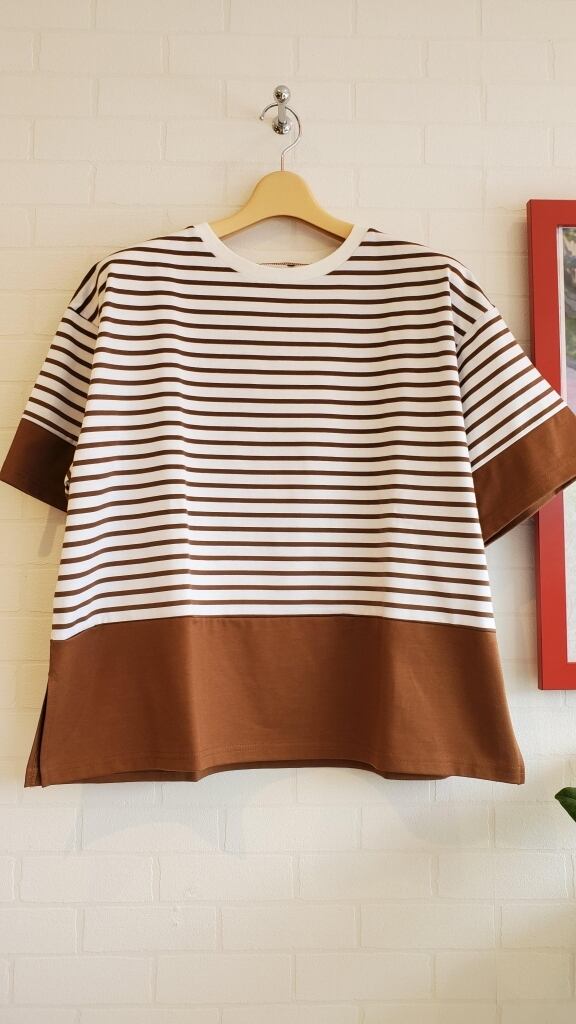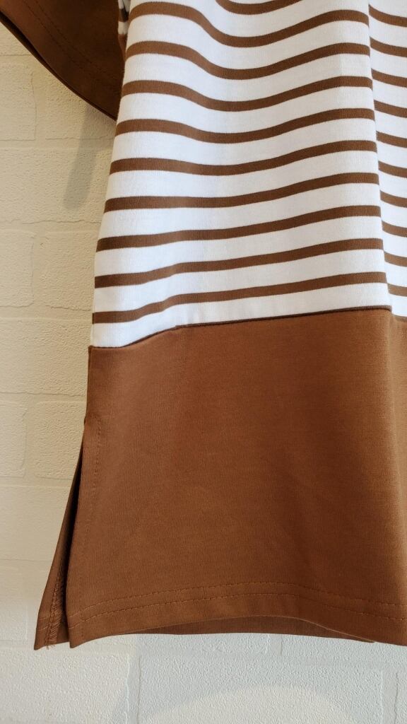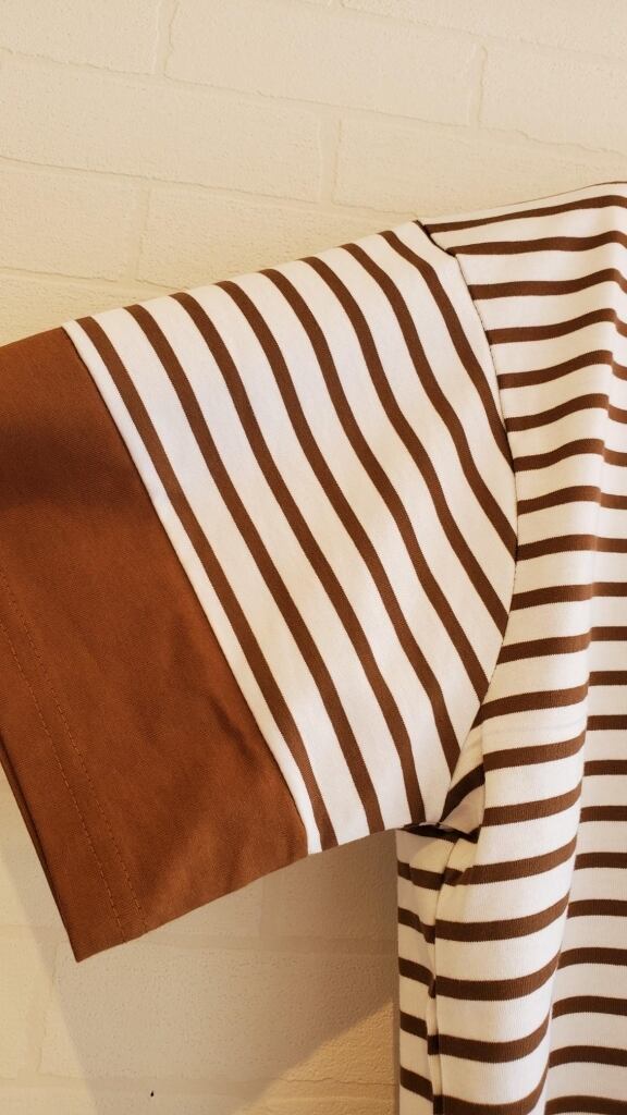 ボーダー柄に無地の配色が効いた、質の良い日本製のコットン100%カットソー。