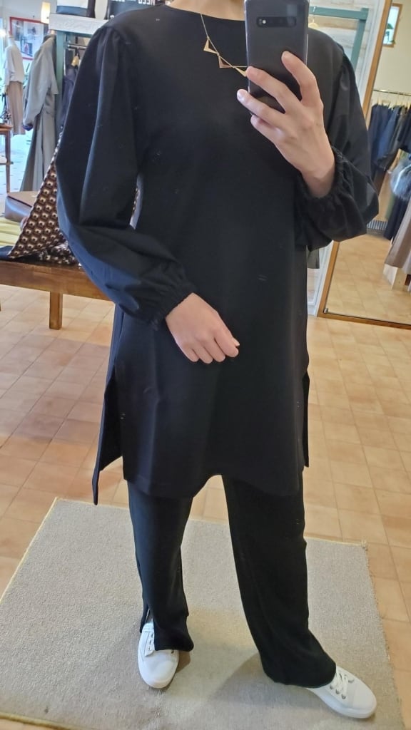 良質<ププラ>で定評のある、滑らかな肌当たりのデュアルウォームポンチ素材の身頃に、ほんのりハリのあるボリュームのお袖を切り替えています。