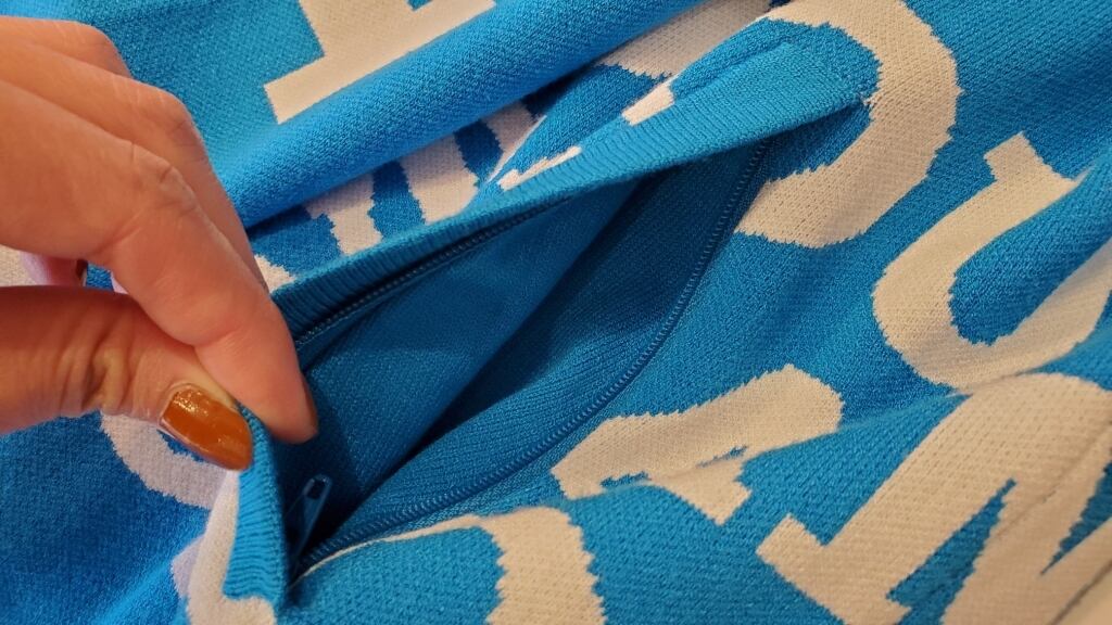 鮮やかに目を惹くターコイズカラーとポイントの柄が、一枚で華やかに見映えしてくれます。