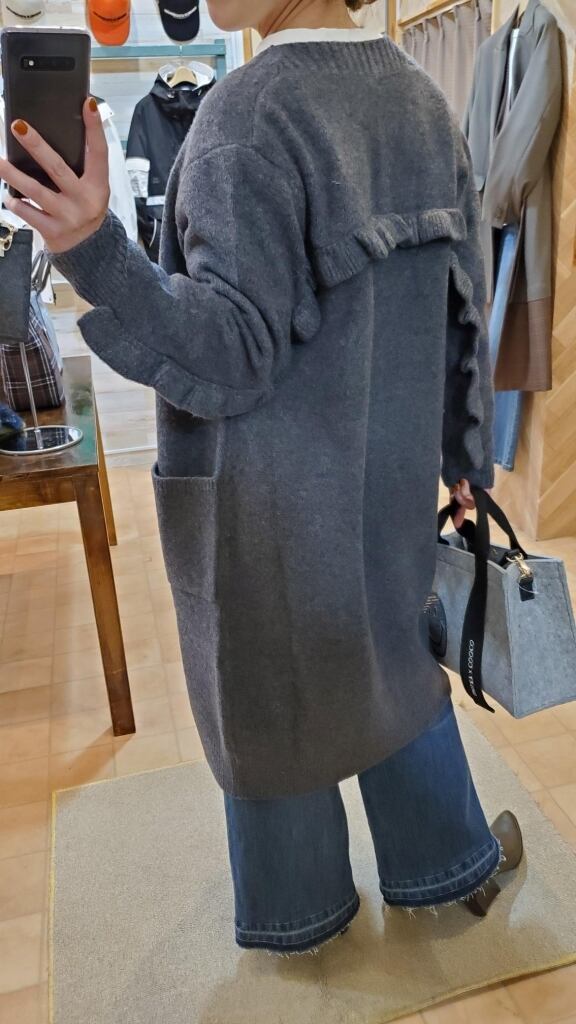 肉厚でもっちりふわふわ、着心地軽~いロングカーディガンです。後ろのチビフリルが可愛い後ろ姿を作ってくれて、普段に気分を上げてくれる一着です。