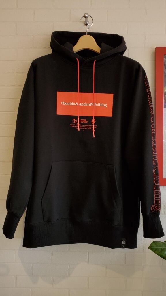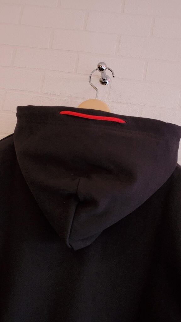 黒地に赤のロゴや紐使いを効かせて、カッコよく目を惹きます。