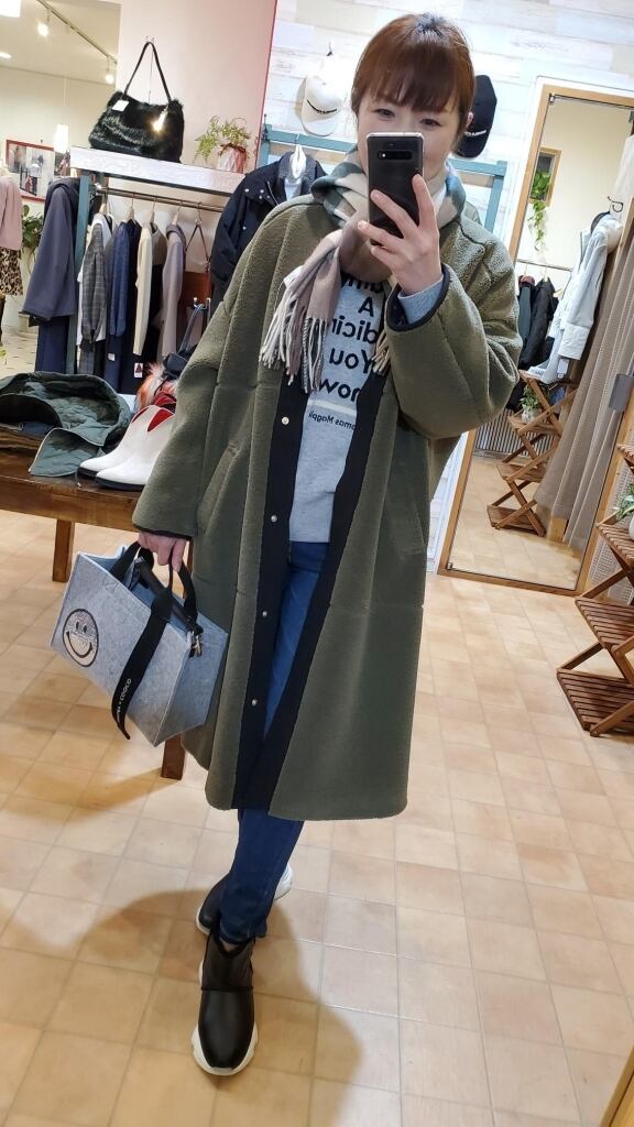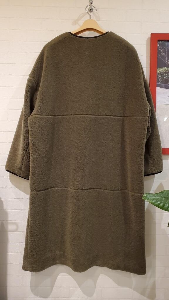 リラックス感のあるオーバーサイズにセンターラインの効いた、大人カジュアルな印象のロング丈ボアコート。