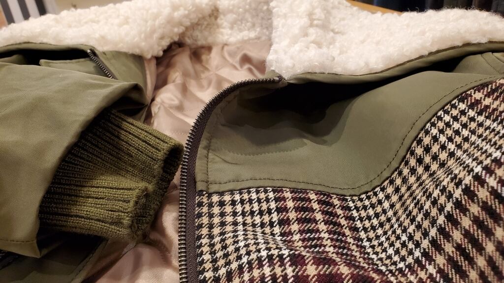 [50%OFF] 衿ボア×チェック柄ウール切り替えコート