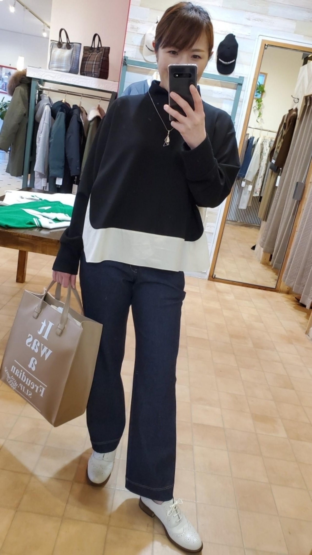 コットン布帛切り替えで、裾の動きがとっても軽やか♪一枚で可愛くキマります。