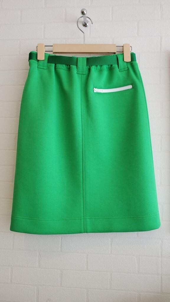 <ダブスタ>オリジナルのマグネットベルト付きで、ウエスト総ゴム伸縮性のある穿きやすさ。すっきり54㎝丈で、新鮮に感じる大人のミニスカートになっています。