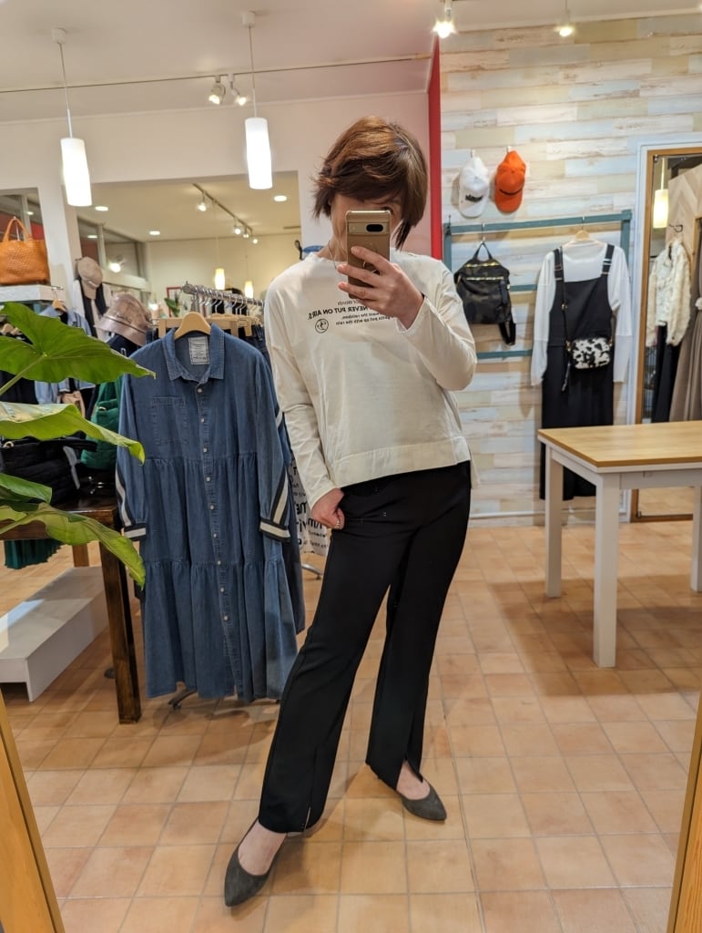 カジュアルにもエレガントスタイルにもお使い頂けるお気に入りパンツになりそうですよ。