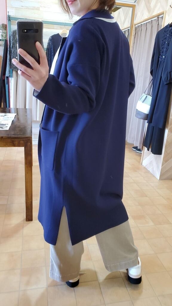春先の今時期にちょうど良いウォーム感と、着心地の良さが自慢のコーディガン。テーラードの衿できちんと感のある仕上がりになっています。