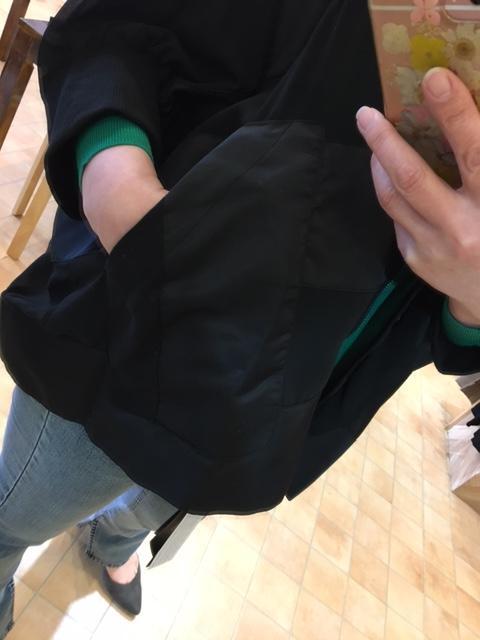 ナイロンタフタ×シフォンのボーダー切り替えデザインがとっても新鮮な、オススメのブルゾンが登場です。