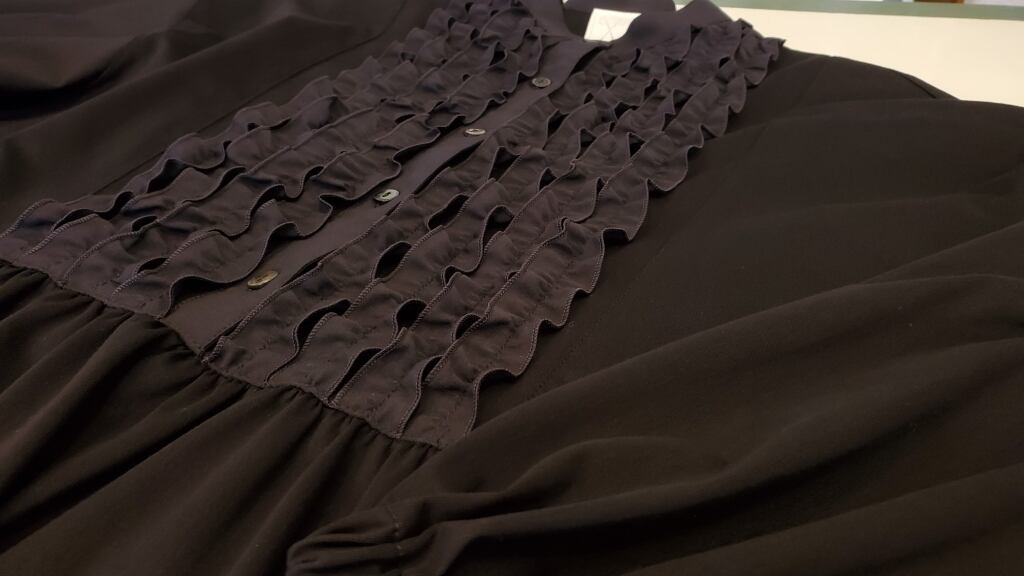 胸元の贅沢なくしゅくしゅフリル使いで、甘さを抑えた大人の可愛さが魅力のワンピースです。