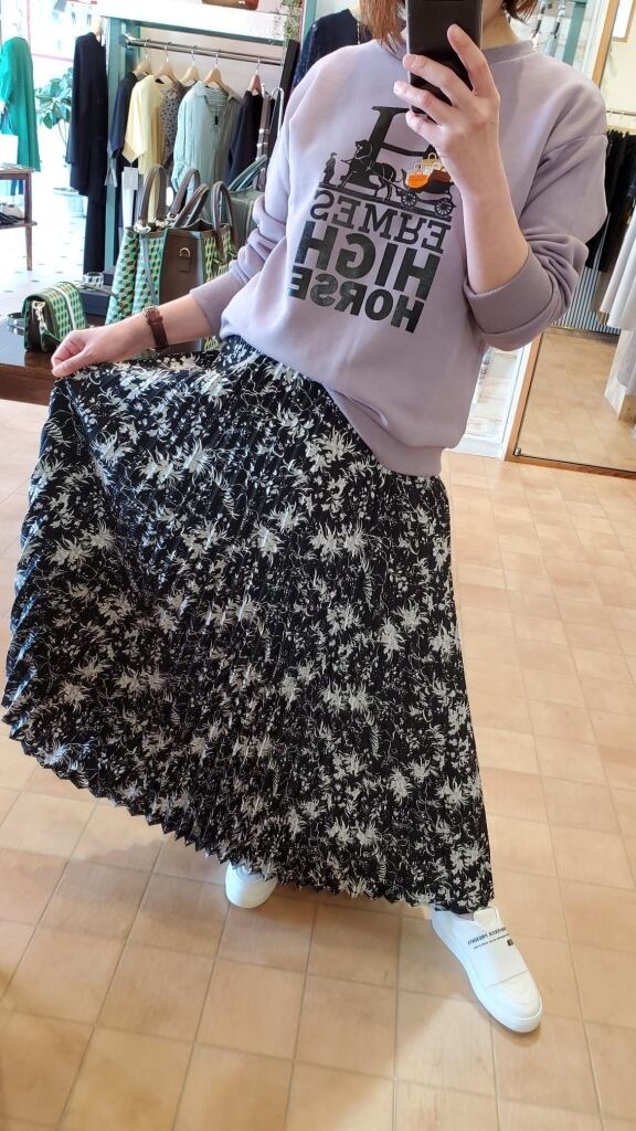 モノトーンカラーで落ち着きのある花柄ですので、普段柄ものが苦手な方も挑戦しやすく、さり気なく見映えしてくれるスカートになってくれます☆
