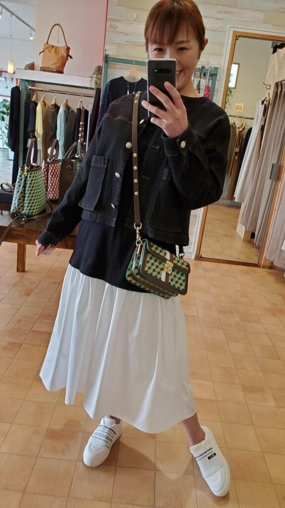 お袖、裾のふんわりとした切り替えデザインですが、モノトーンの配色ですのでスッキリ見えしてくれます♪