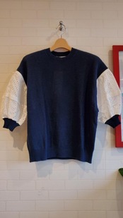[30%OFF] <トロア> バスケット編み 袖レースドッキングニットプルオーバー