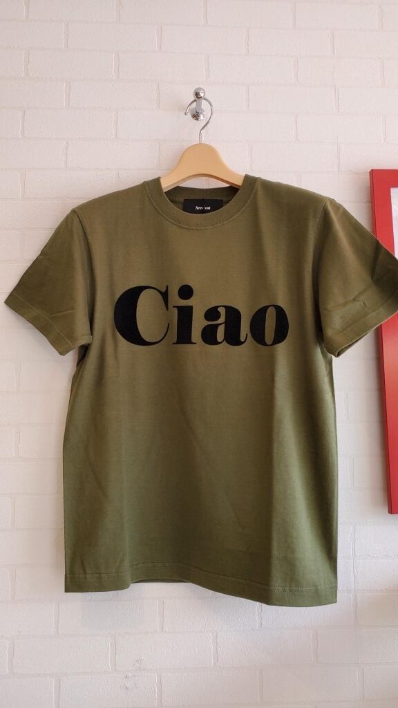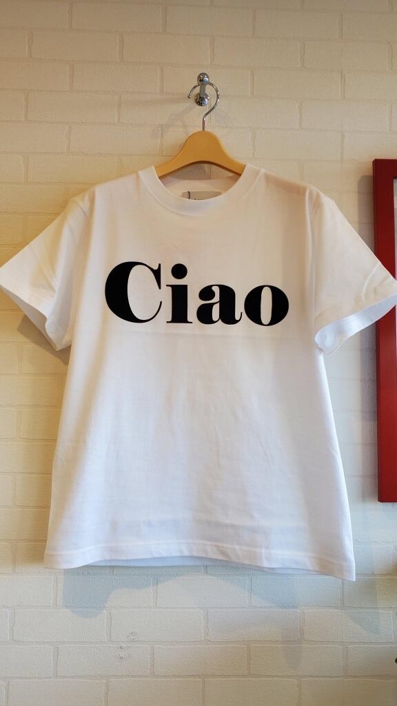 胸元のフロッキーロゴ『ciao』のアクセントがお茶目で可愛い!この夏のワンポイントTシャツとしてお楽しみくださいね~♪