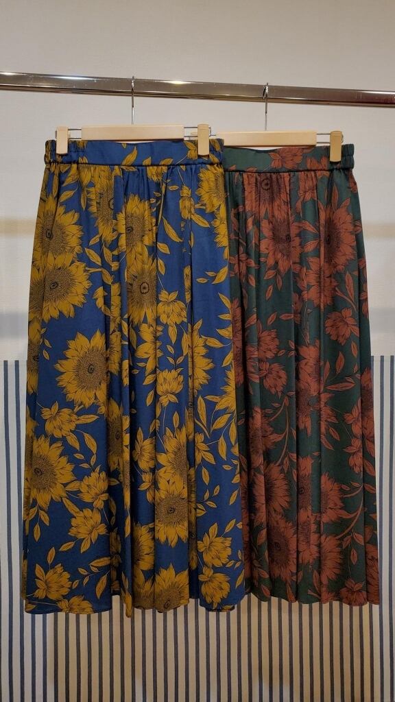 この夏は、シックなお色の花柄で大人のリゾート感リラックス感たっぷりに。上品さのあるスカートに仕上がっています。