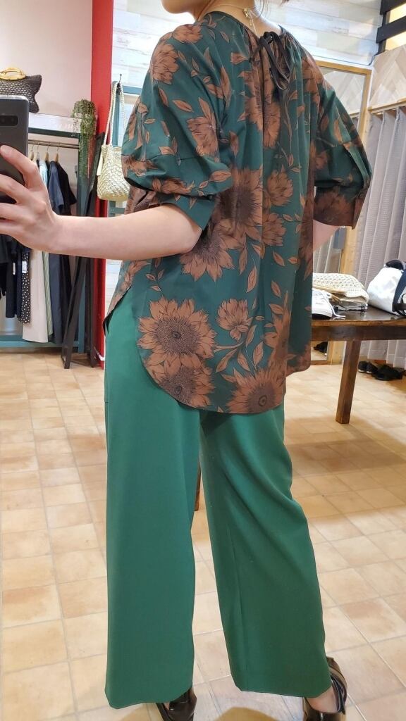 ほんのりパフスリーブで、上品さだけでなくほのかな女性らしさを兼ね備えたブラウスに仕上がっています。