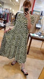 手描きのヘリンボーン柄プリントがとっても目を惹くワンピース★