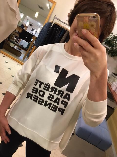 大きなロゴが目を惹くプルオーバー☆ ロゴの意味はフランス語で「考えることをやめないで」だそうです。