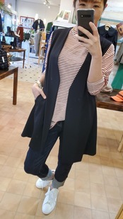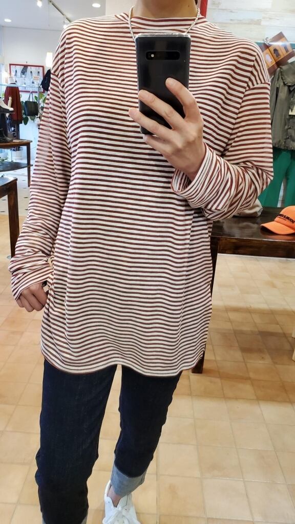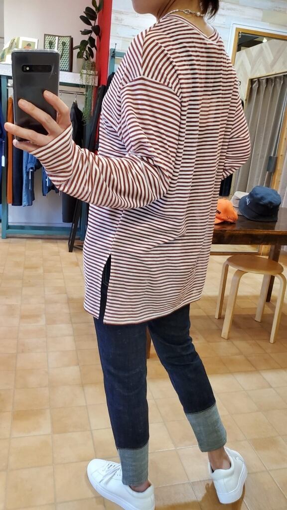 ゆったりとした着心地ですがすっきりボックスシルエット。インナーの上に一枚で、羽織やアウターに重ねて・・などなど♪