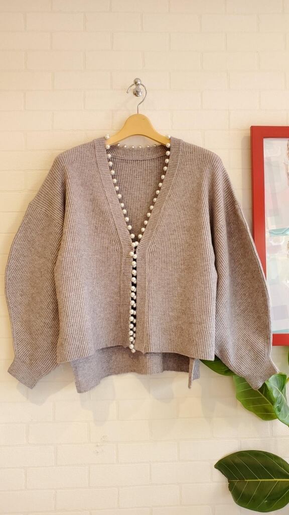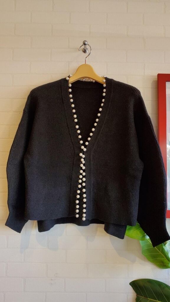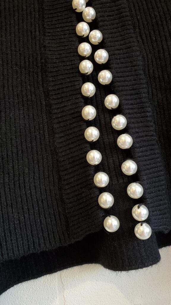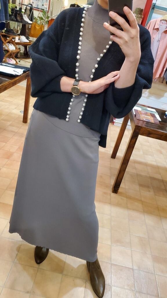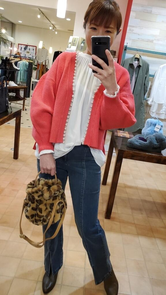 たっぷりパール使いとボリュームのお袖がアクセントのカーディガンです☆