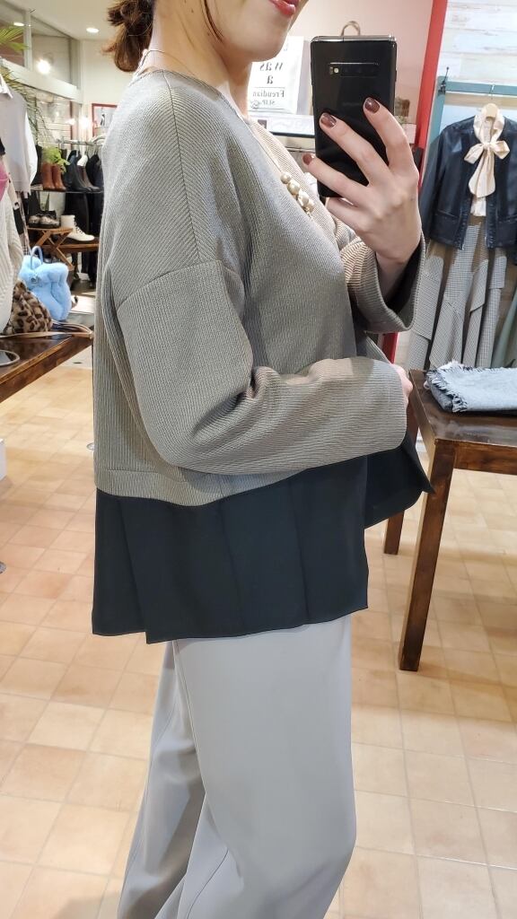 <トロア> リブジャージー×ツイル裾切り替えプルオーバー