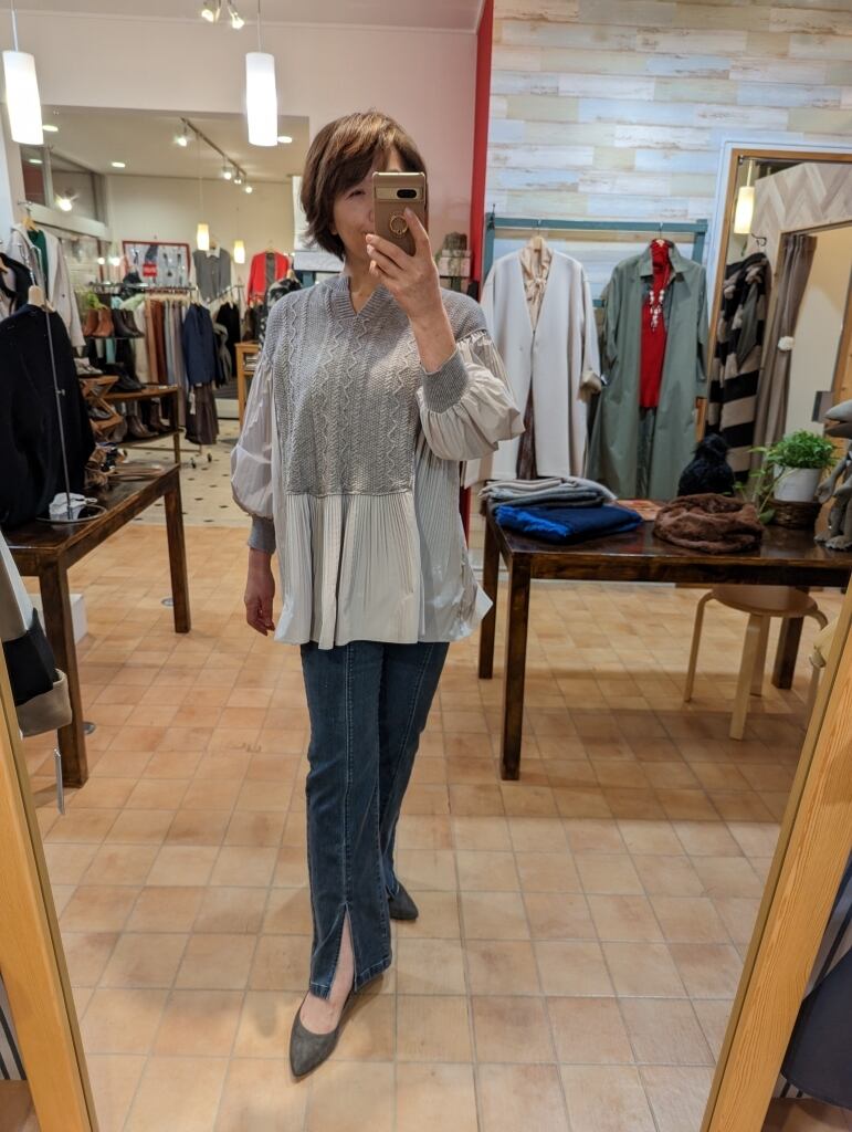 一枚で見映えしてくれる、ニット×プリーツドッキングプルオーバーです☆