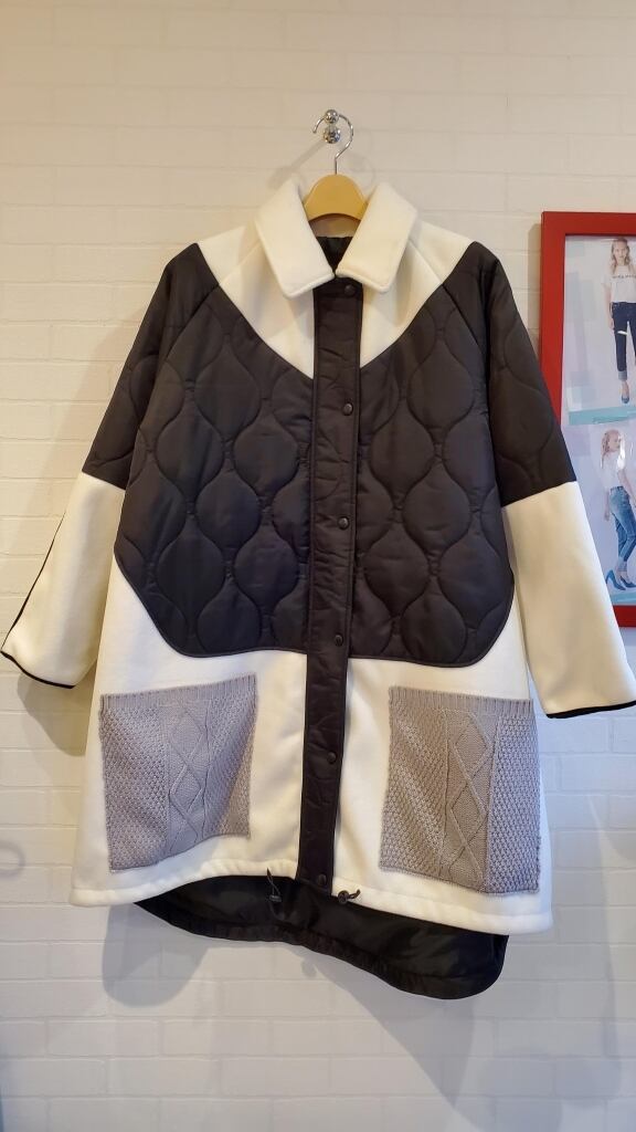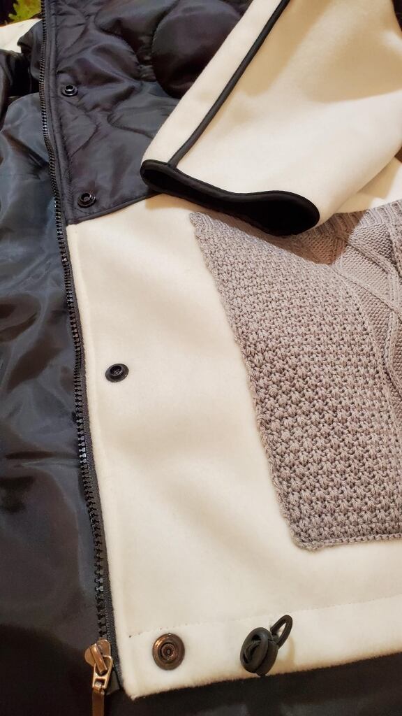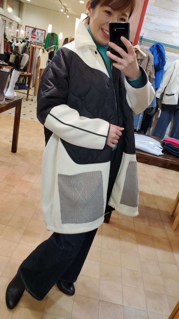 ウールライクなメルトン素材に、中綿キルティング素材を斜めカットに切り替えて、遊びのあるデザインがとっても魅力的!