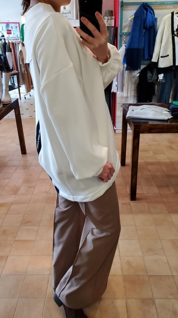 アヤンらしいふっくらスリーブと後ろ丸みの裾、今回は後ろのロゴ入りラインがアクセントになって、少しモードさのあるカッコいいデザインです。