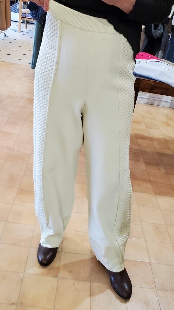 ポリエステルの軽~い糸で編まれたケーブルニットワイドパンツです★