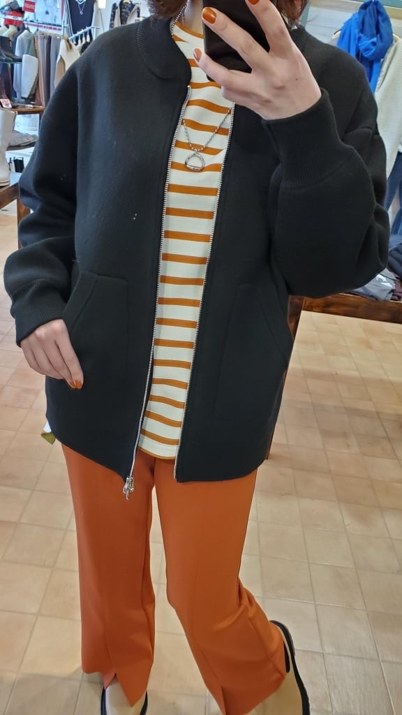 前ジップ開きでヒップを綺麗にカバーする美シルエット。たくさんのコーディネートで重宝してくれますよ☆