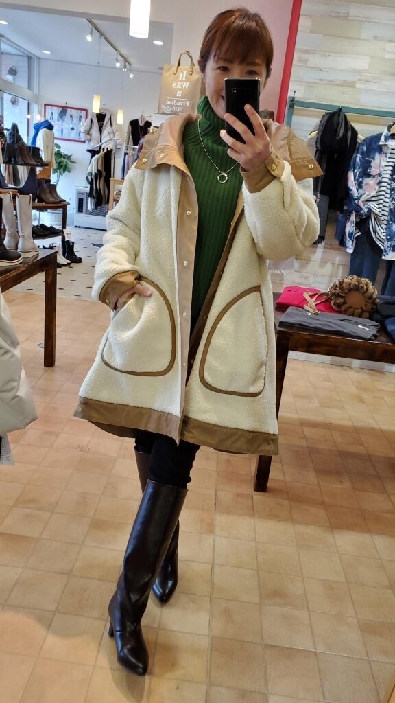 ホワイトボアとベージュの配色がとっても可愛いコートです☆彡